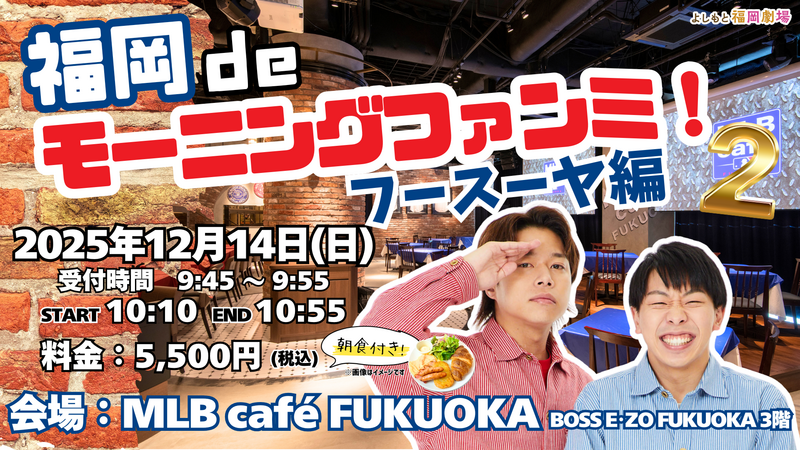 ※お問い合わせはMLB caféではご対応出来かねますため、よしもと福岡劇場(092-832-1122)へお願いします。