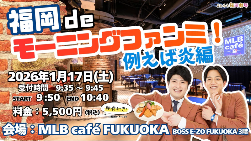 ※お問い合わせはMLB caféではご対応出来かねますため、よしもと福岡劇場(092-832-1122)へお願いします。